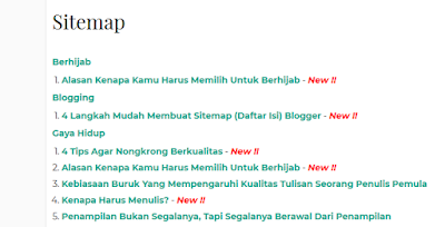 Oke, kali ini kami akan sedikit berbagi tutorial sederhana mengenai cara membuat daftar isi dengan tampilan yang tidak kalah menarik dari web-web besar. Oh ya, Sitemap kadang juga dijadikan sebagai bahan pertimbangan sebuah blog bisa dikatakan berkualitas (katanya sih begitu), namun pada kenyataannya memang sitemap menjadi tolak ukur diterima atau tidaknya sebuah situs. walaupun kadang ada juga yang tidak memiliki menu sitemap tetap disetujui.