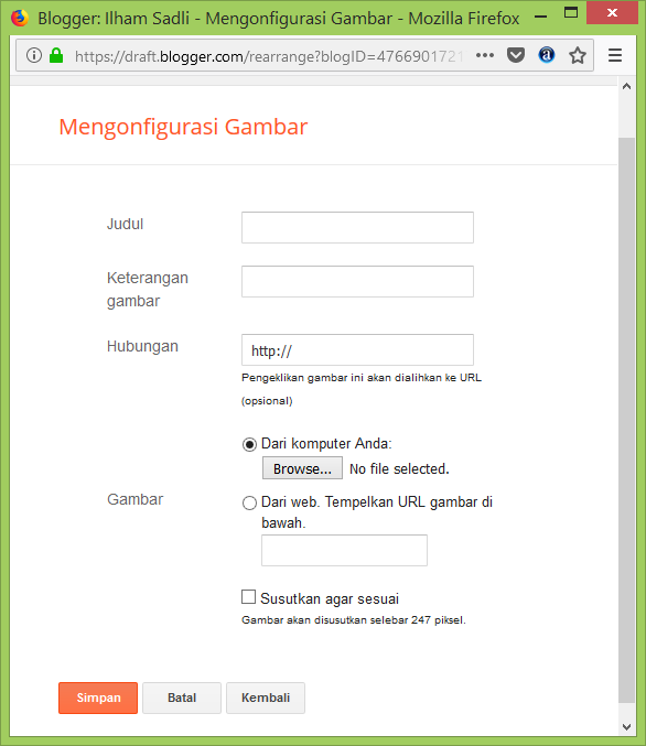 - langkah terakhir save, maka image tersebut sudah tertempel dalam blog sahaba