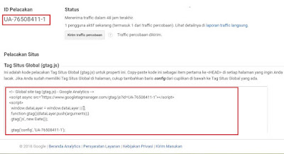 UA-765xxxx-x adalah Tracking ID dan <Script> adalah kode yang akan digunakan untuk memasang kode tracking ID dalam blog. Berikut ini langkah-langkahnya.