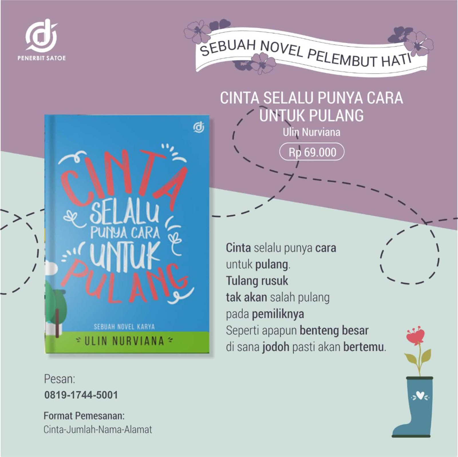 Novel ini berjudul "Cinta Selalu Punya Cara Untuk Pulang", sebuah novel penggugah jiwa dan sebuah nasihat tersirat untuk para kaula muda. Karena tidak sedikit diantara pemuda menghawatirkan yang namanya "siapa pasangan hidupnya? siapa penggenap agamnya? siapa jodoh terbaiknya?" Novel ini hadir sebagai sebuah tamparan keras, terutama untuk aku pribadi. Banyak sekali hal-hal yang memberikan tamparan keras untukku.