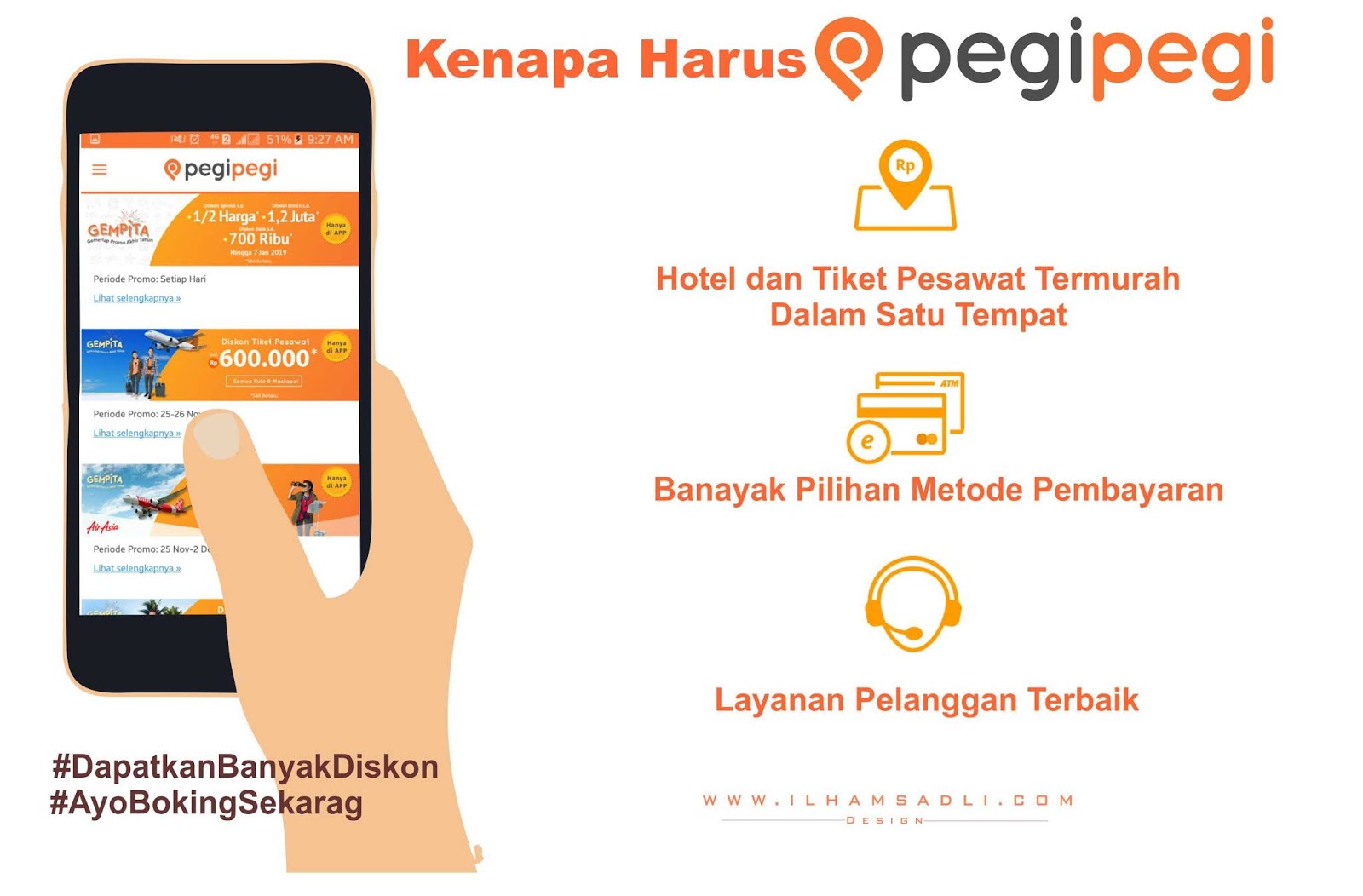 4. Cek bagian promo, karena ada banyak sekali promo yang ditawarkan oleh pegipegi. Misalkan saja Promo Gempita yang diadakan setiap hari denga diskon hingga setengah harga.